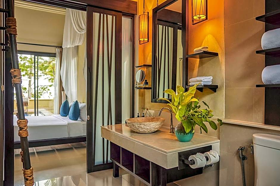 BEACHFRONT POOL VILLA is 1184 square feet and includes a king-size bed 150-183 width.