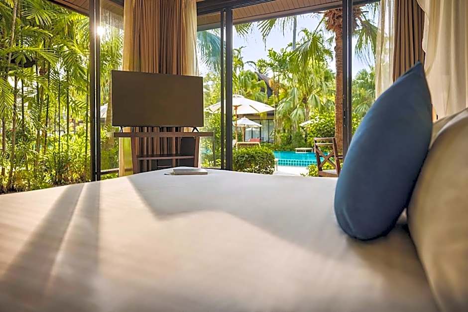 Spacious villas feature a living room and private plunge pool. They come with a flat-screen TV and mini-bar.